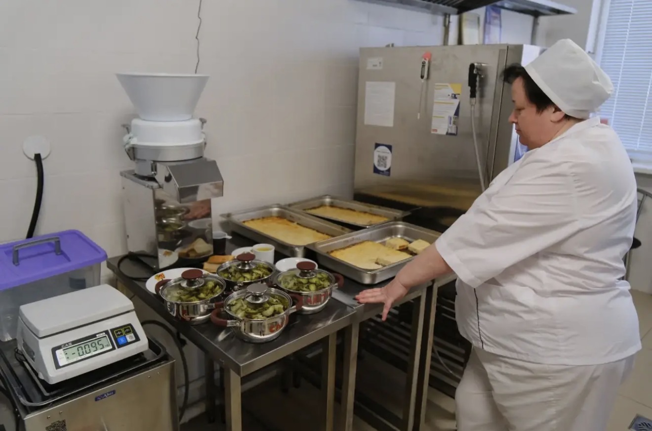 Cалаты из свежих, вареных, квашеных овощей (огурцы, помидоры, перец, капуста, свекла, морковь) с растительным маслом. Первое горячее блюдо — щи, борщ, овощной или рыбный суп. Второе блюдо — мясное, рыбное, из птицы, из печени с гарниром. Третье блюдо — компот из свежих фруктов, сухофруктов, ягод. Хлеб пшеничный, ржаной.