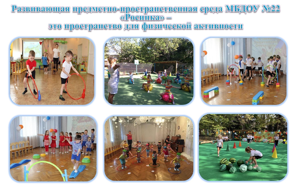 Среда стимулирует физическую активность детей, присущее им желание двигаться, познавать, побуждать к подвижным играм. В ходе подвижных игр, в том числе спонтанных, дети имеют возможность использовать игровое и спортивное оборудование. Игровая площадка предоставляет условия для развития крупной моторики. Игровое пространство (как на площадке, так и в помещениях) также является трансформируемым (меняется в зависимости от игры и предоставляет достаточно места для двигательной активности).