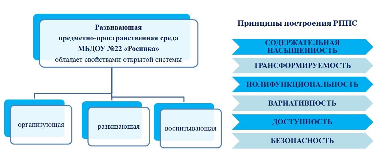 В соответствии с ФГОС дошкольного образования развивающая предметно-пространственная среда МБДОУ №22 "Росинка" обеспечивает реализацию: