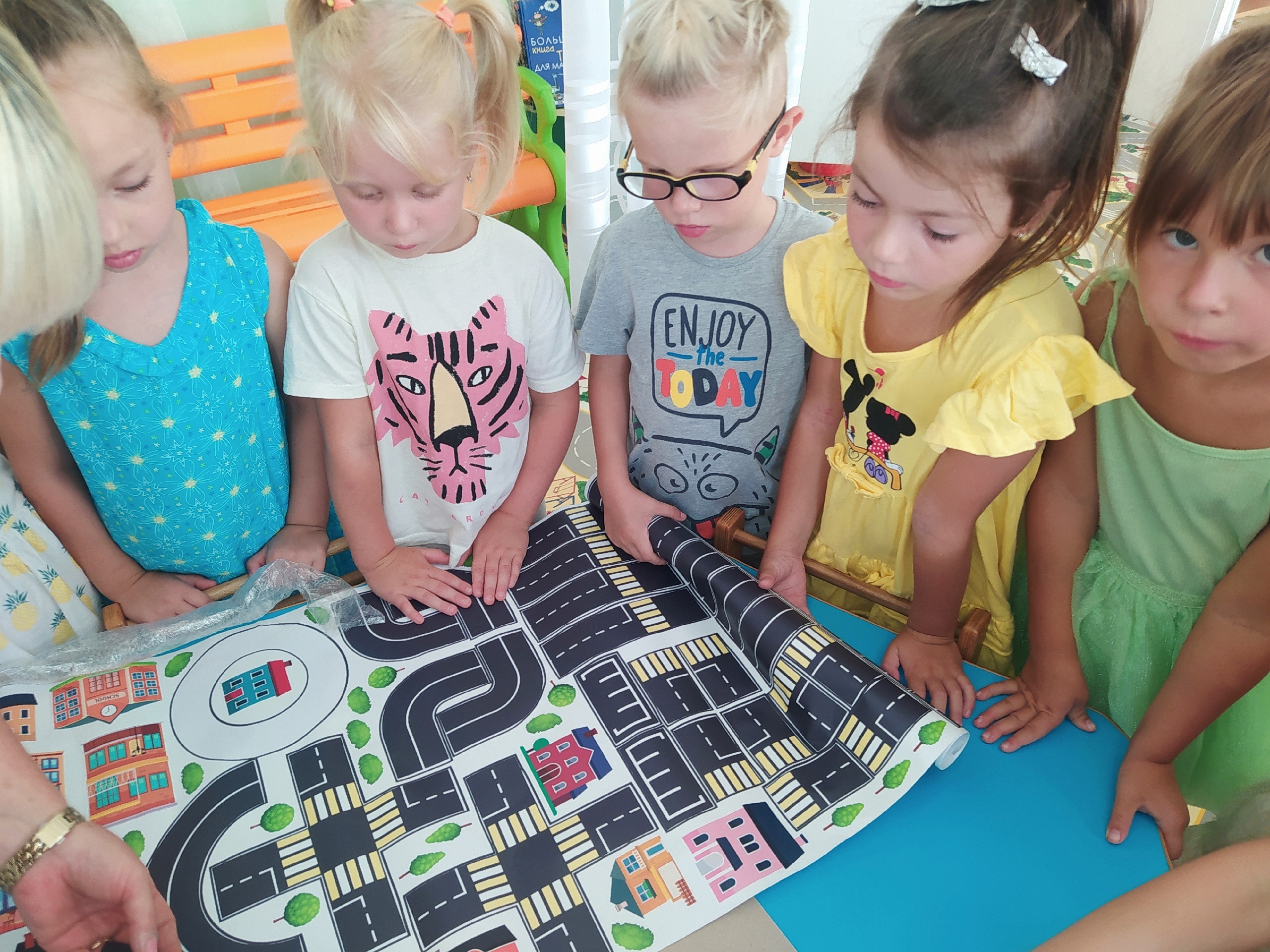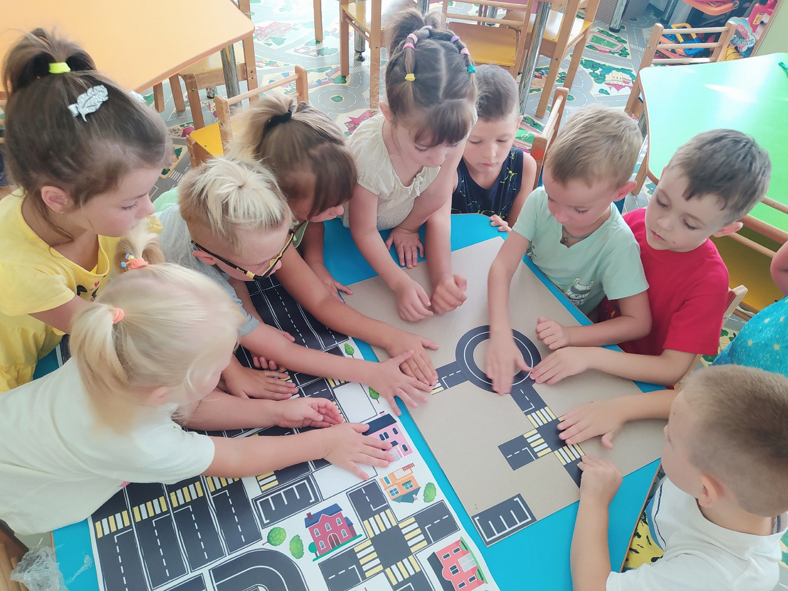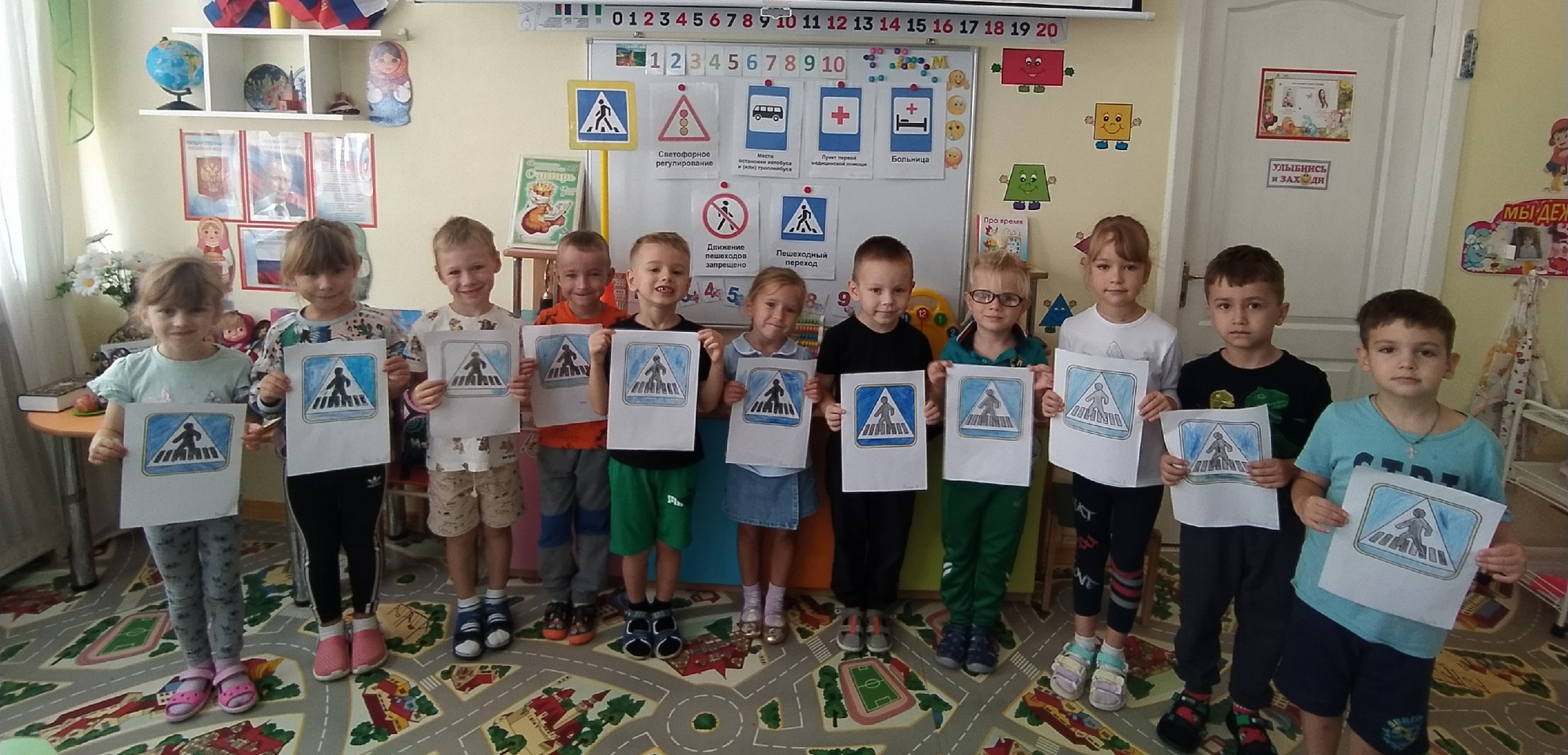 Выполнение наглядного напоминания необходимо для детей любого возраста. С этой целью ребята группы "Смешарики" вместе с педагогом Еленой Хорошко создали макет по ПДД.