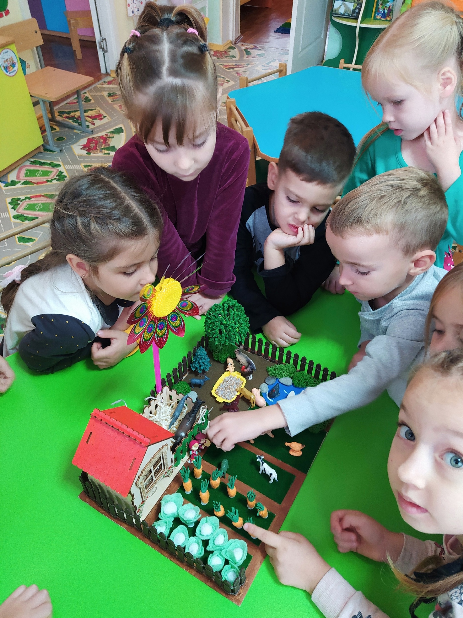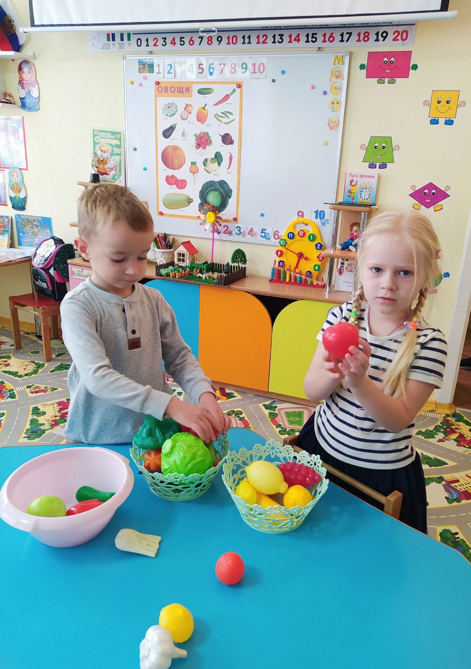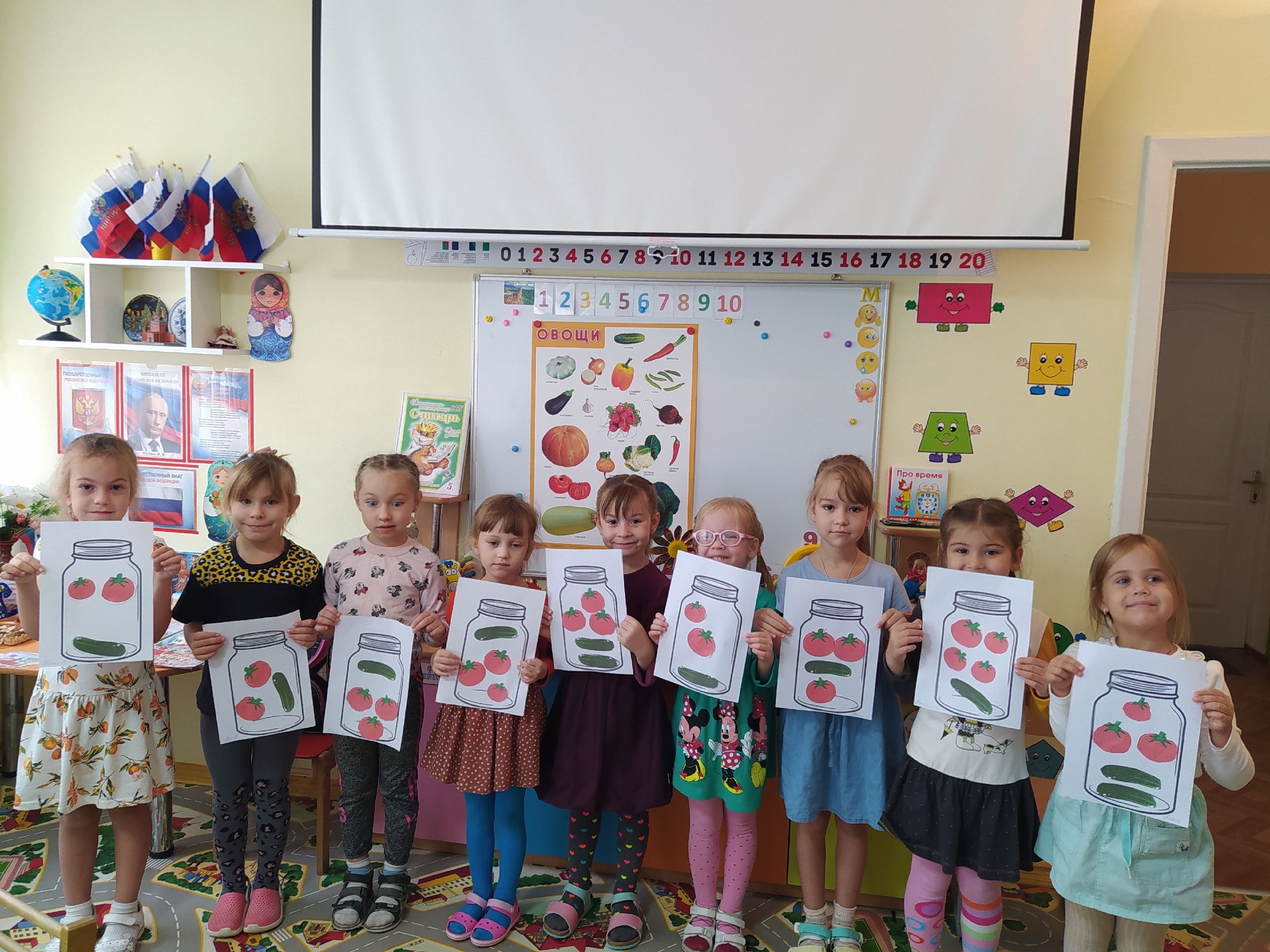 В группе "Смешарики" проходит тематическая неделя «Огород. Овощи», целью которой является закрепление и расширение обобщенных представлений детей об овощах, а также о сборе урожая и заготовке на зиму.