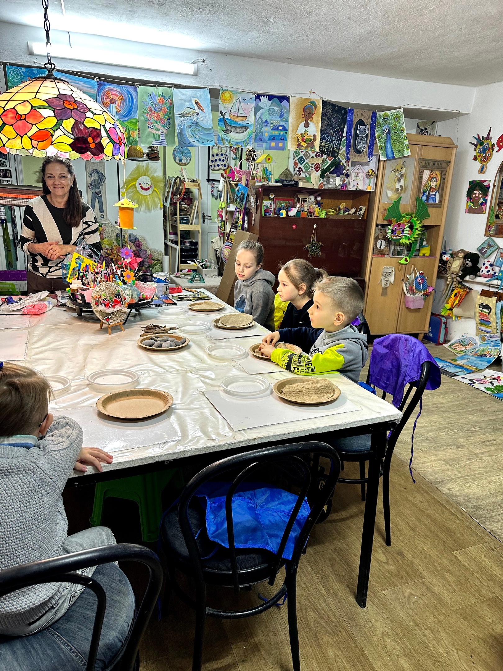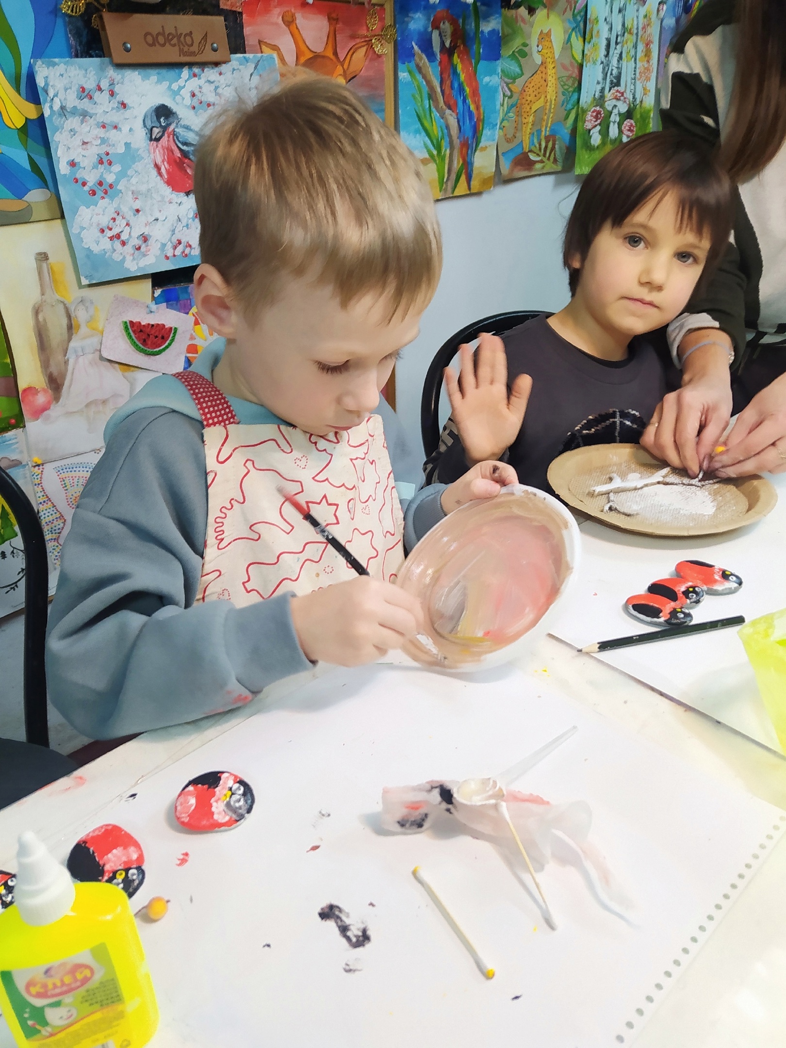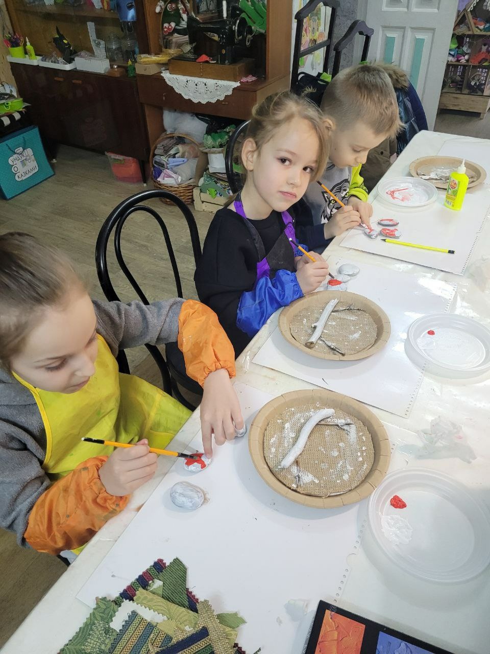 Старшая группа "СМЕШАРИКИ" открыла Год семьи совместным посещением творческого мастер-класса. Ребята вместе с родителями рисовали на морских камешках семью снегирей, изготовили зимнее панно.