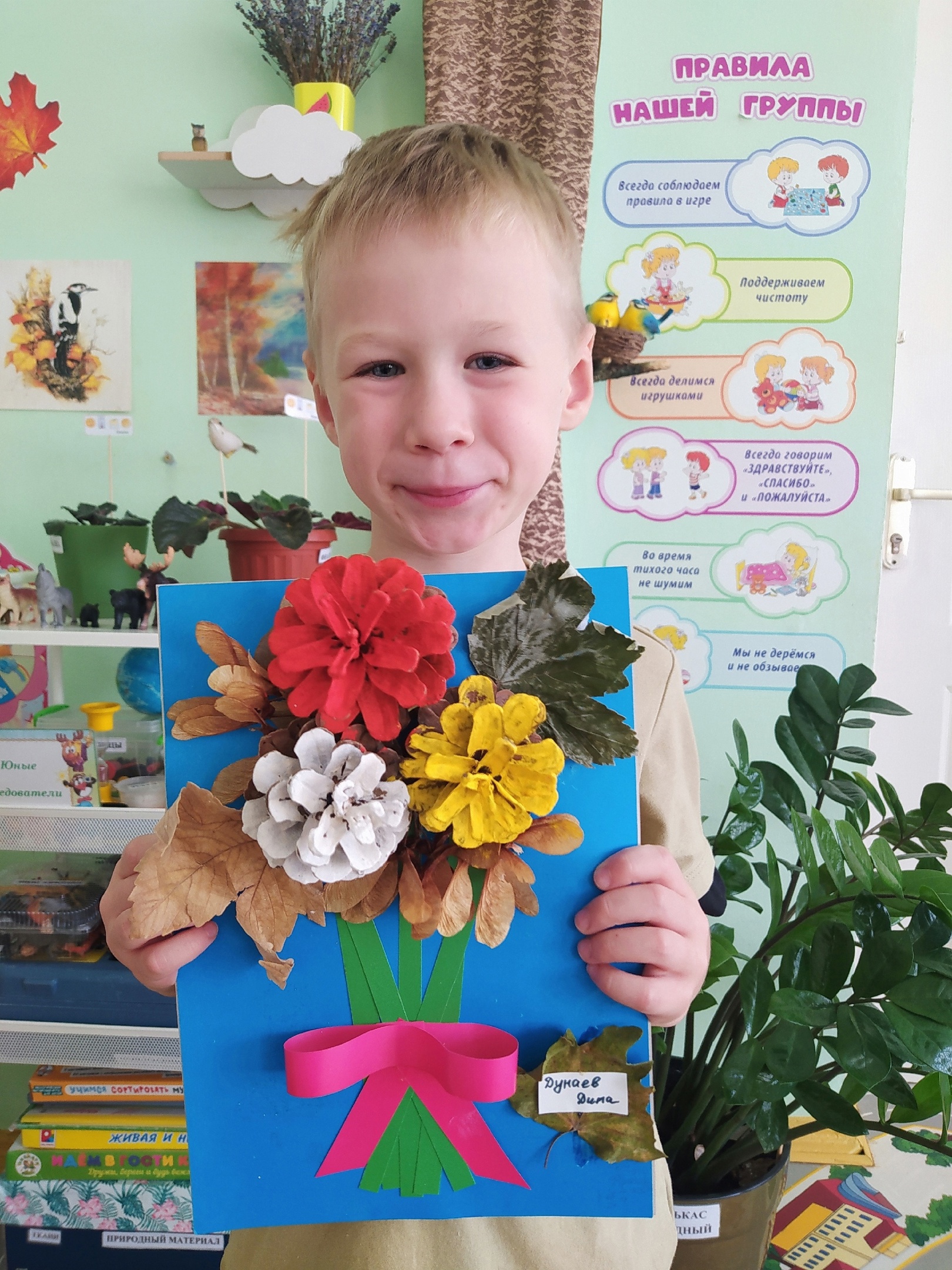 Ребята группы "Смешарики " приняли участие во Всероссийском конкурсе поделок "Шишки, жёлудь, три листочка!"